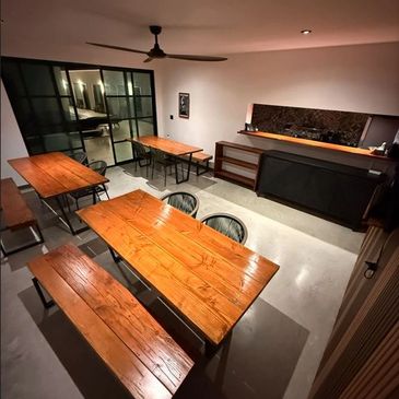 En CaMaINN creemos que el descanso también se disfruta alrededor de la mesa. Nuestro comedor comunitario está diseñado para que vivas una experiencia cálida, cómoda y diferente: